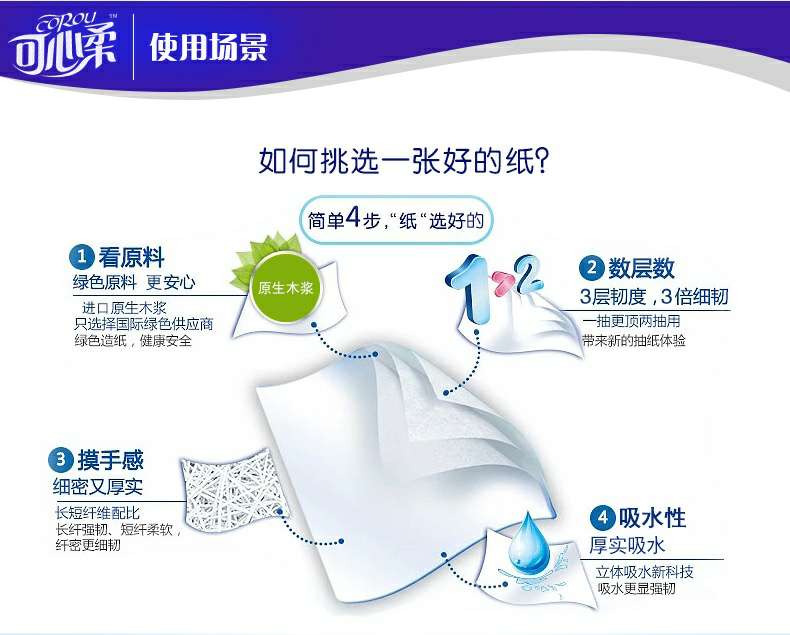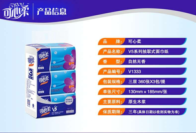 可心柔 V5系列CoRou云柔系列白色木浆40抽