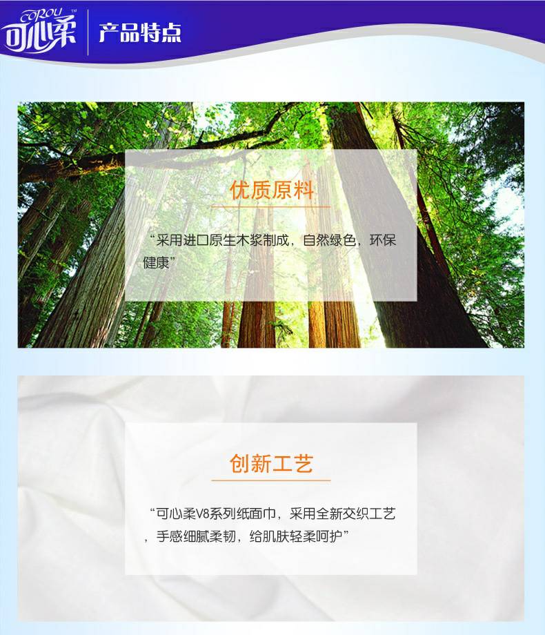可心柔 V8系列CoRou云柔系列白色木浆40抽